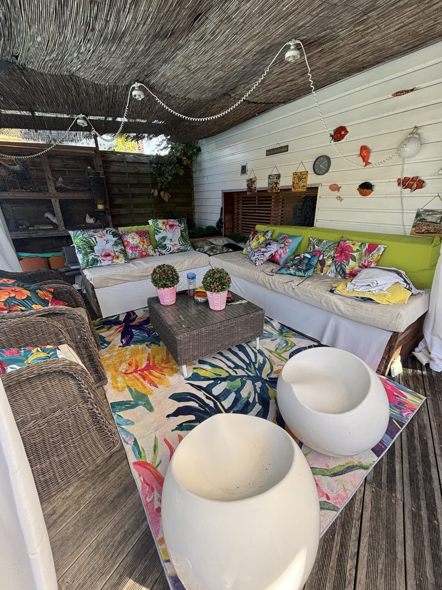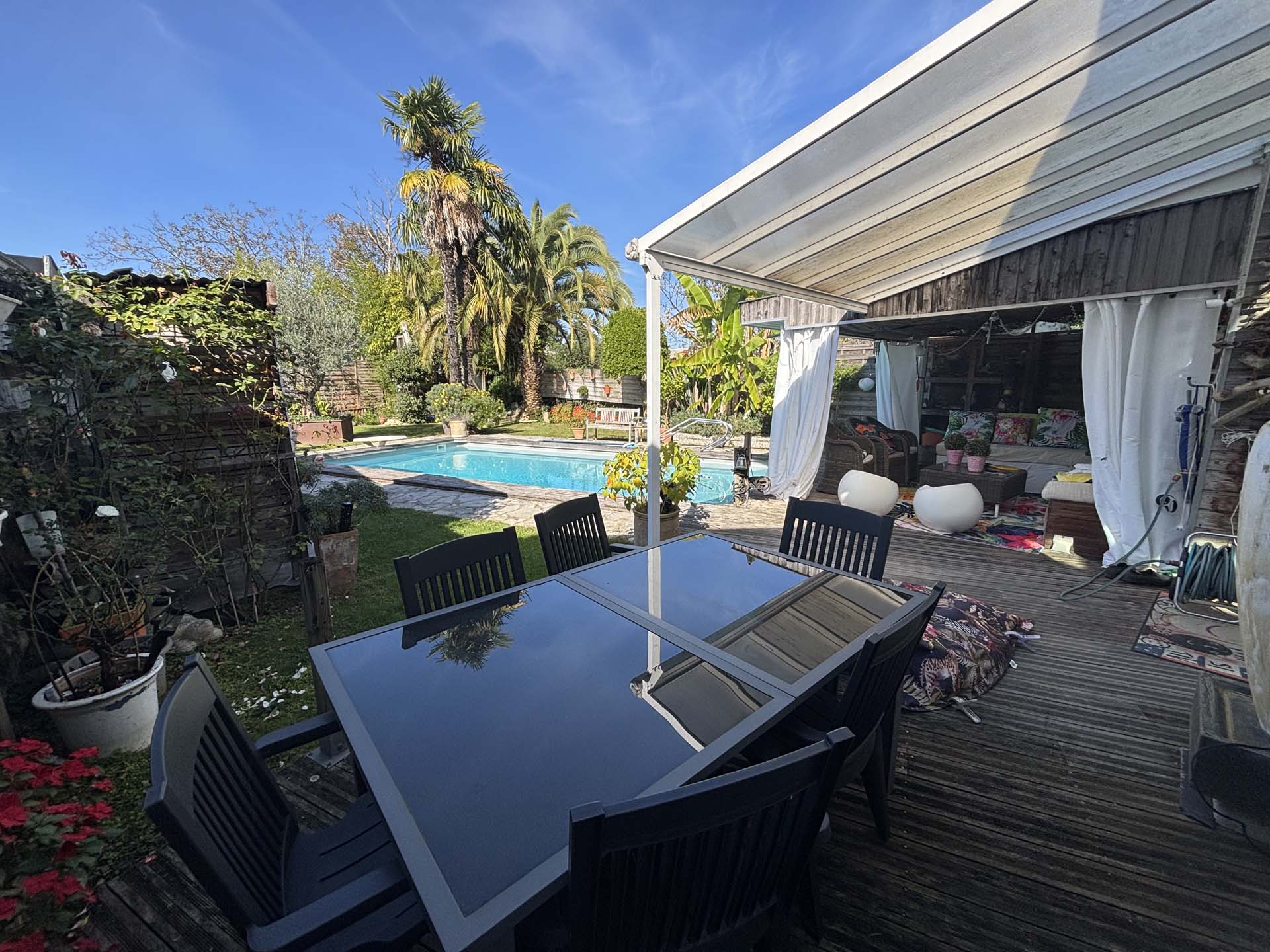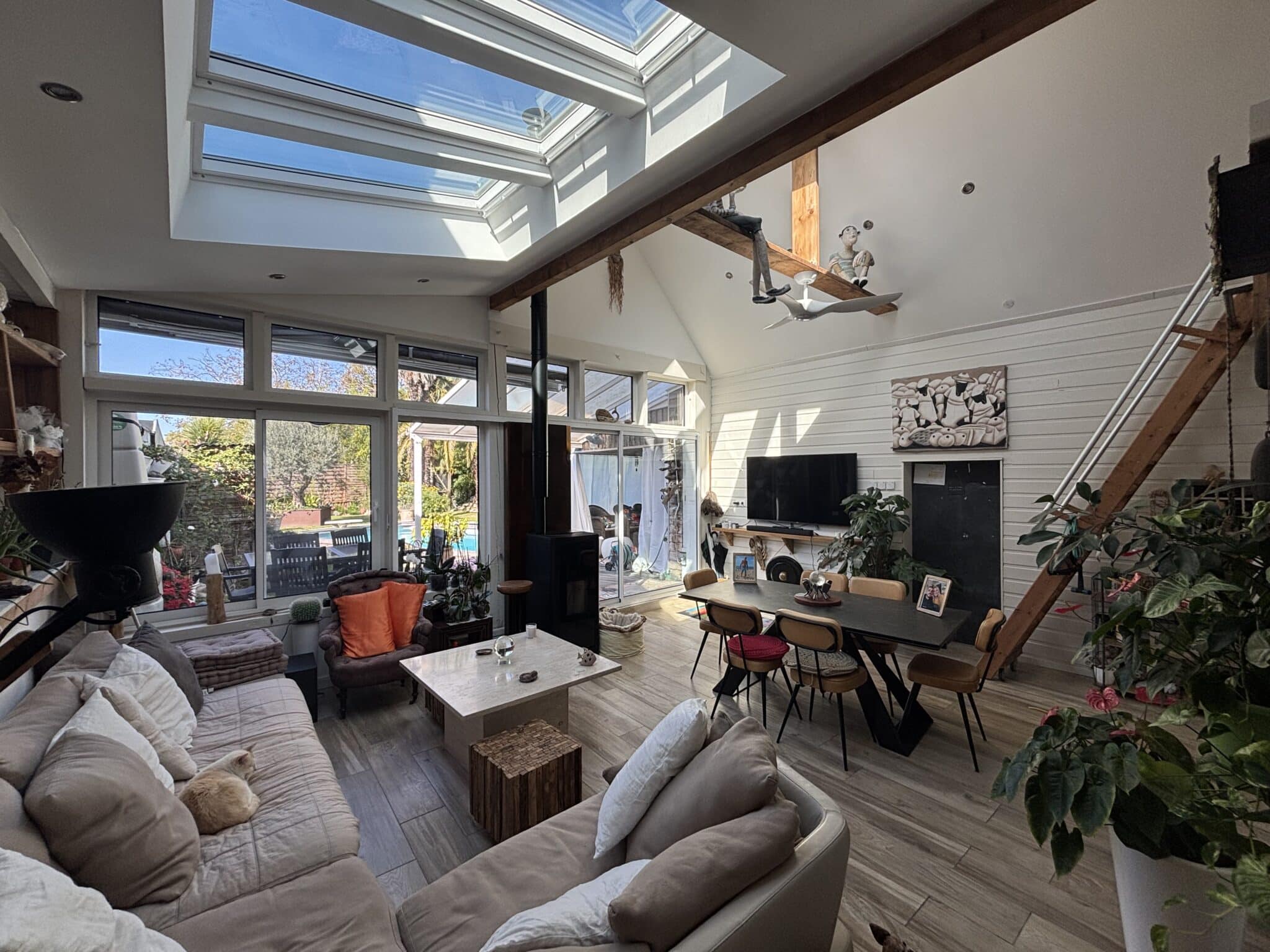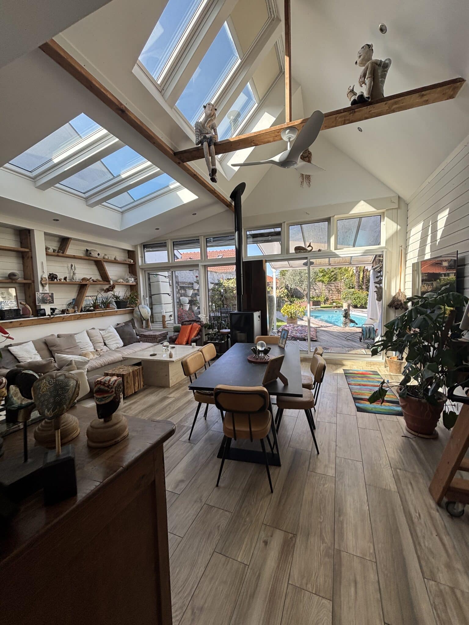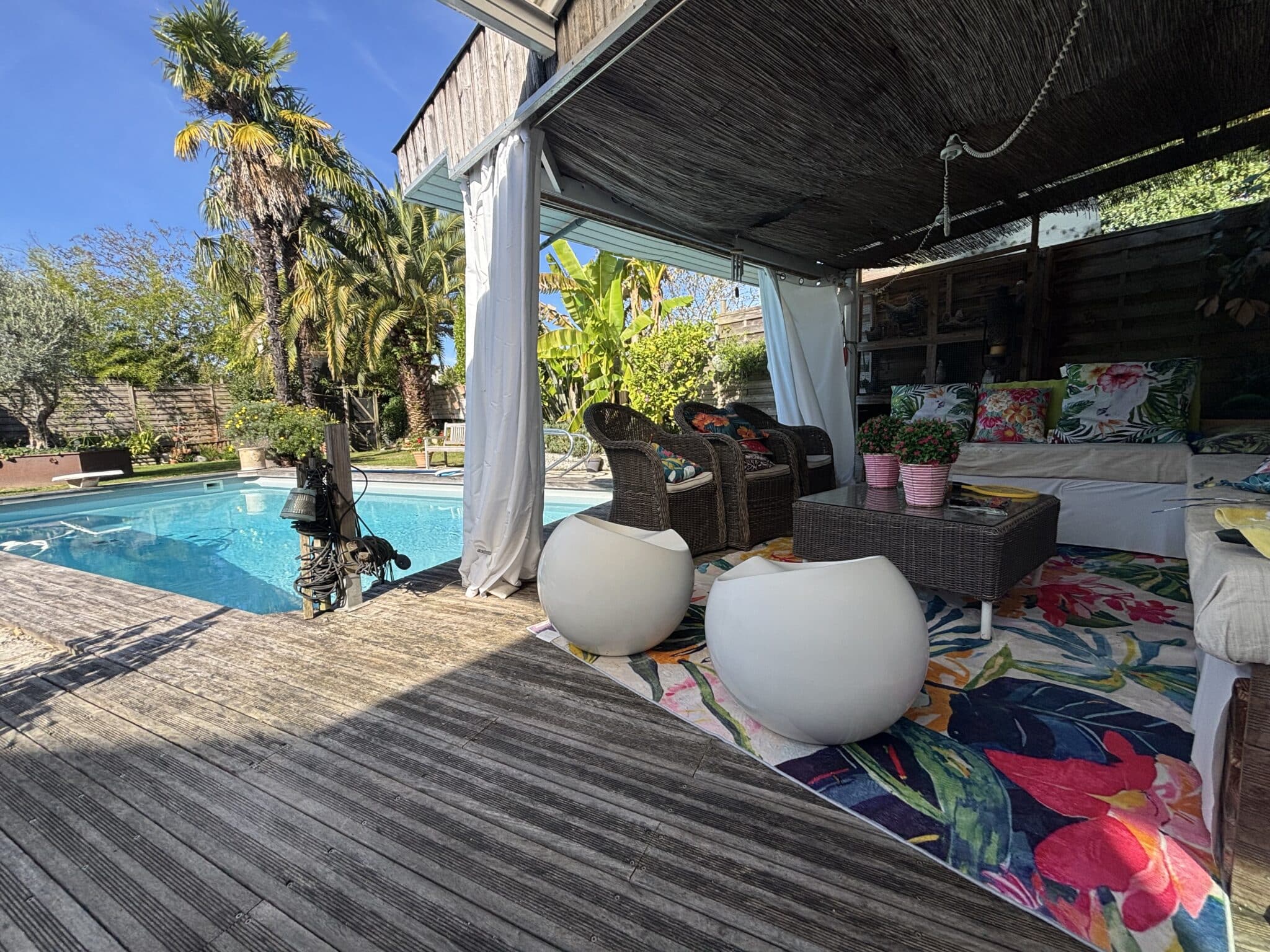 Le coup de cœur : l’agrandissement récent de la maison avec un deuxième salon chaleureux, donnant sur de vastes terrasses et une piscine 8x4m sans vis à vis et un beau jardin intimiste.
