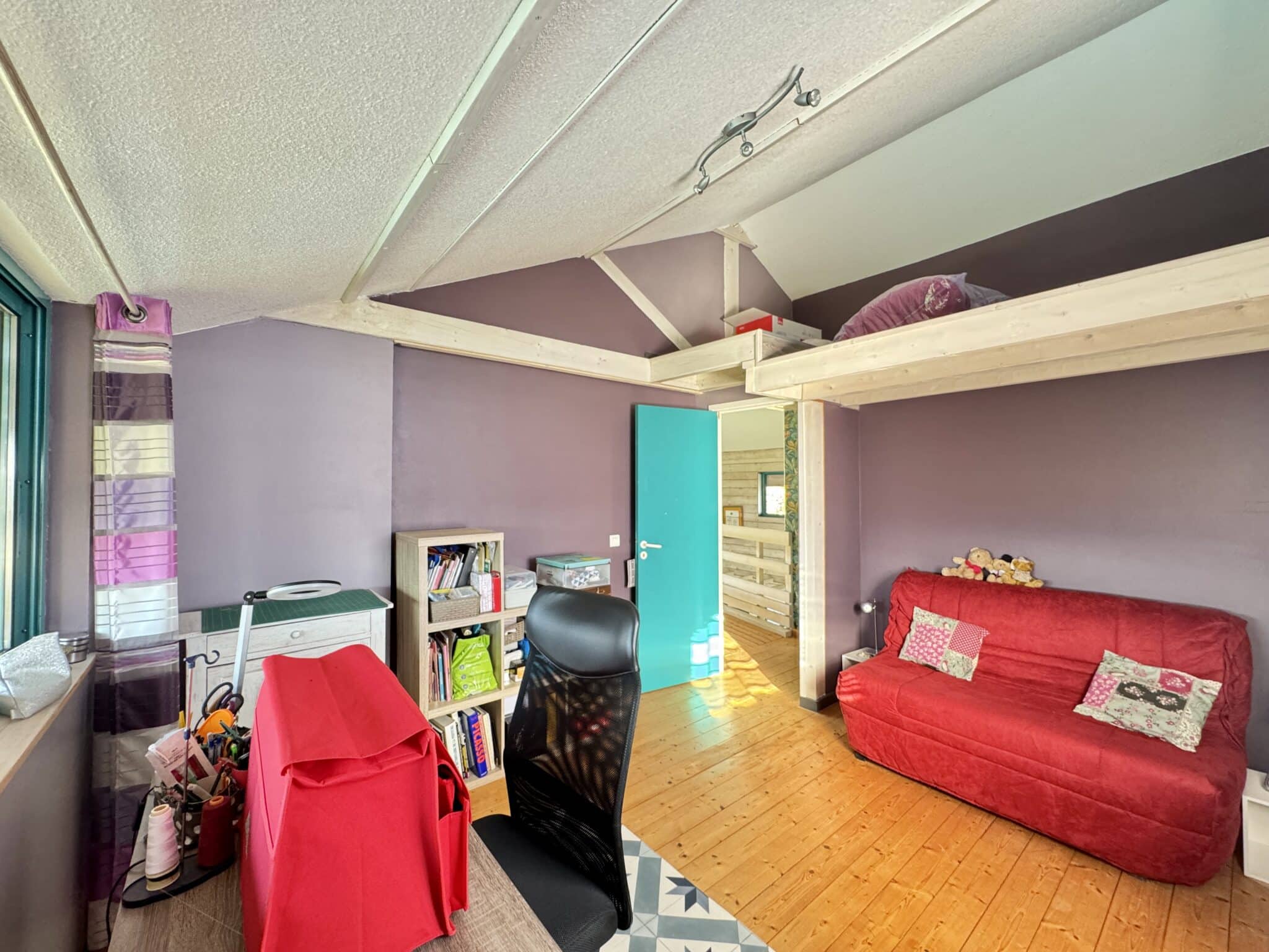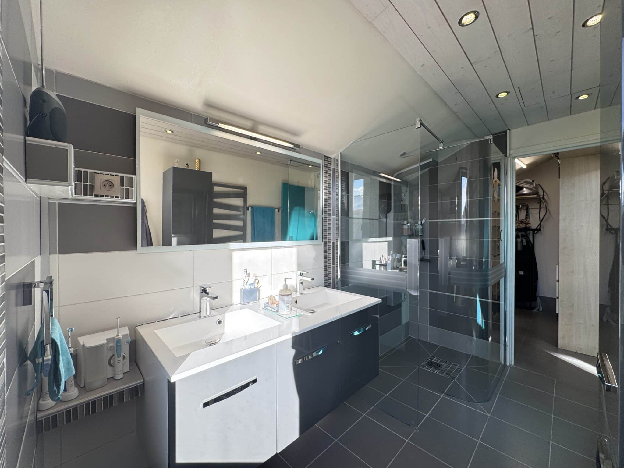La maison permet une vie de plain-pied avec une suite parentale en rez-de-chaussée avec dressing et salle d’eau, pensée pour un quotidien confortable et fonctionnel.