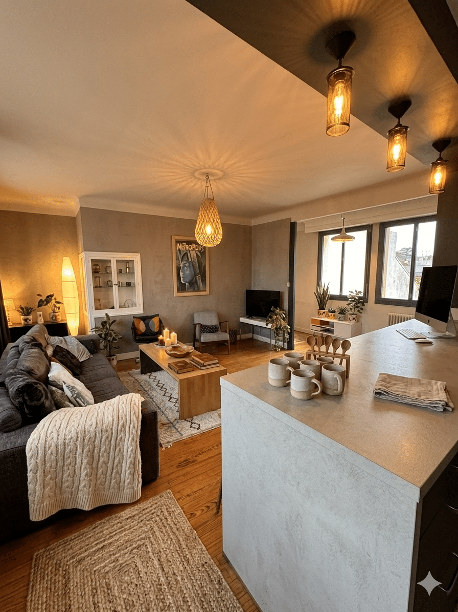 À mi-chemin entre l’appartement et la maison de ville, il séduit dès l’entrée par son organisation fluide et son indépendance. L’accès se fait par le rez-de-chaussée, où un vaste espace d’accueil donne le ton, complété par une buanderie et un local technique. Un stationnement couvert privatif vient parfaire ce niveau, apportant un confort rare en centre-ville.