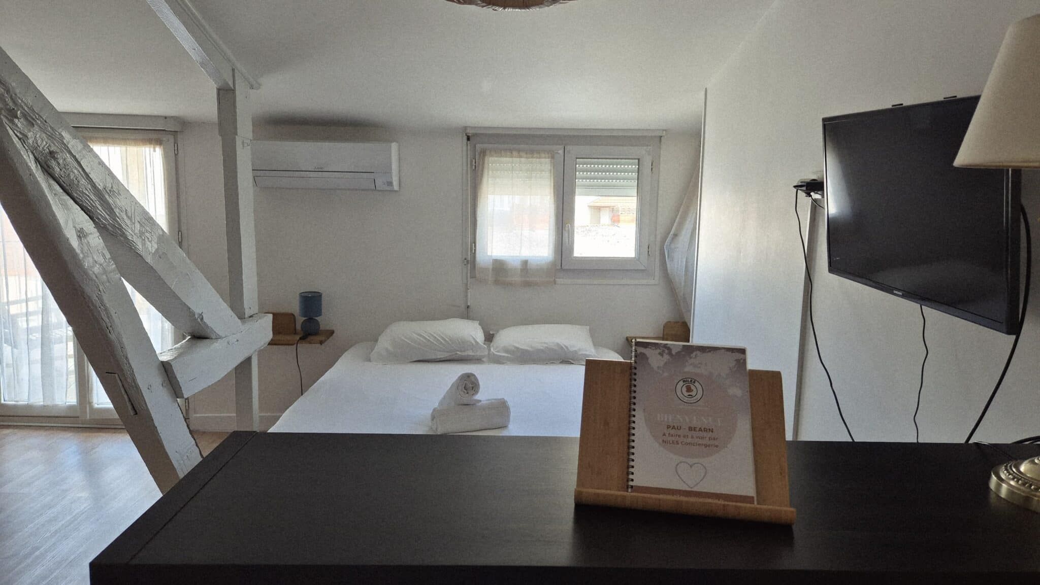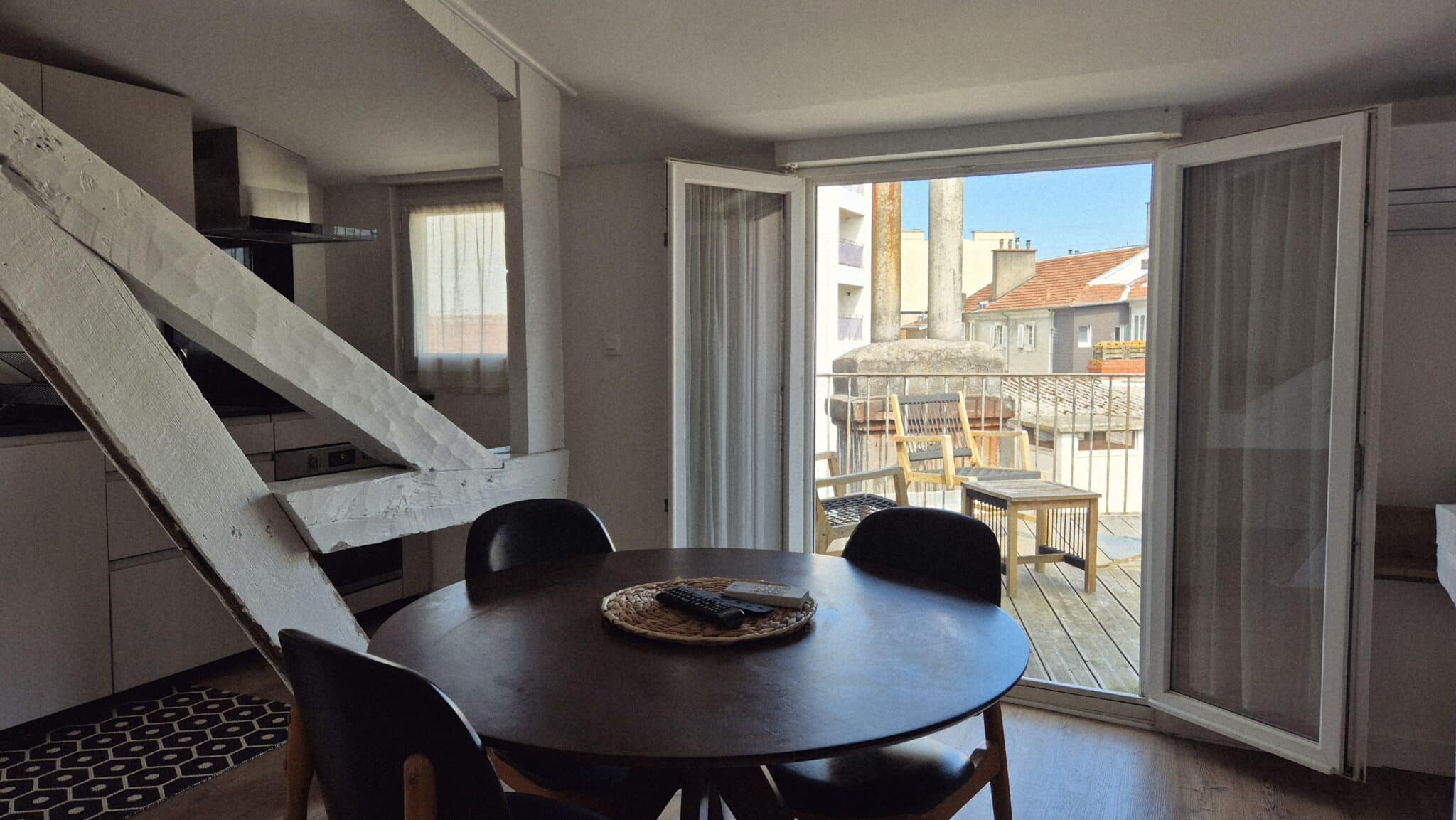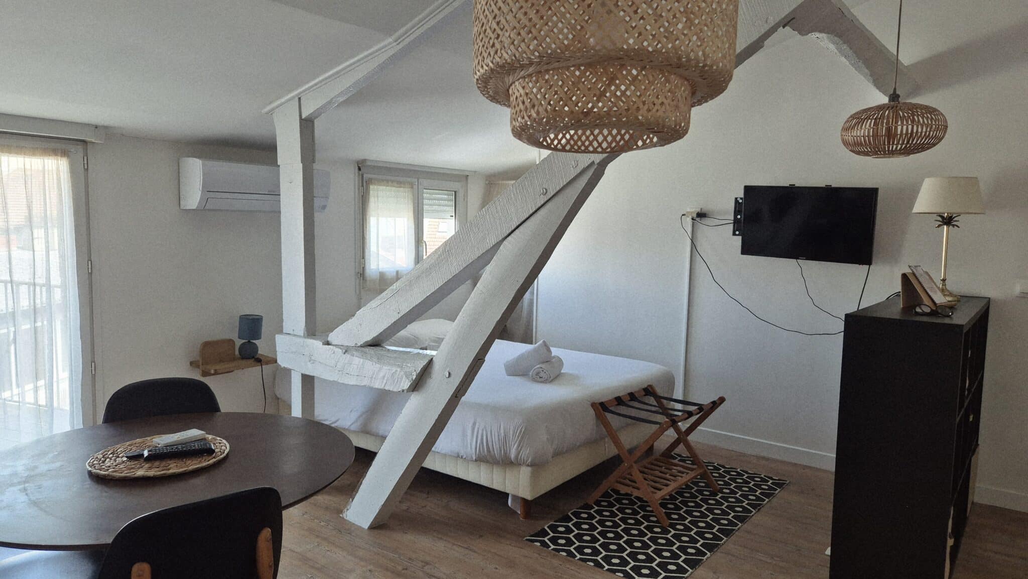 Découvrez le charme authentique de Pau dans ce studio de 30 m², véritable cocon perché au dernier étage en plein centre-ville. Entre poutres apparentes blanchies et décoration soignée, cet appartement offre une atmosphère apaisante et lumineuse.