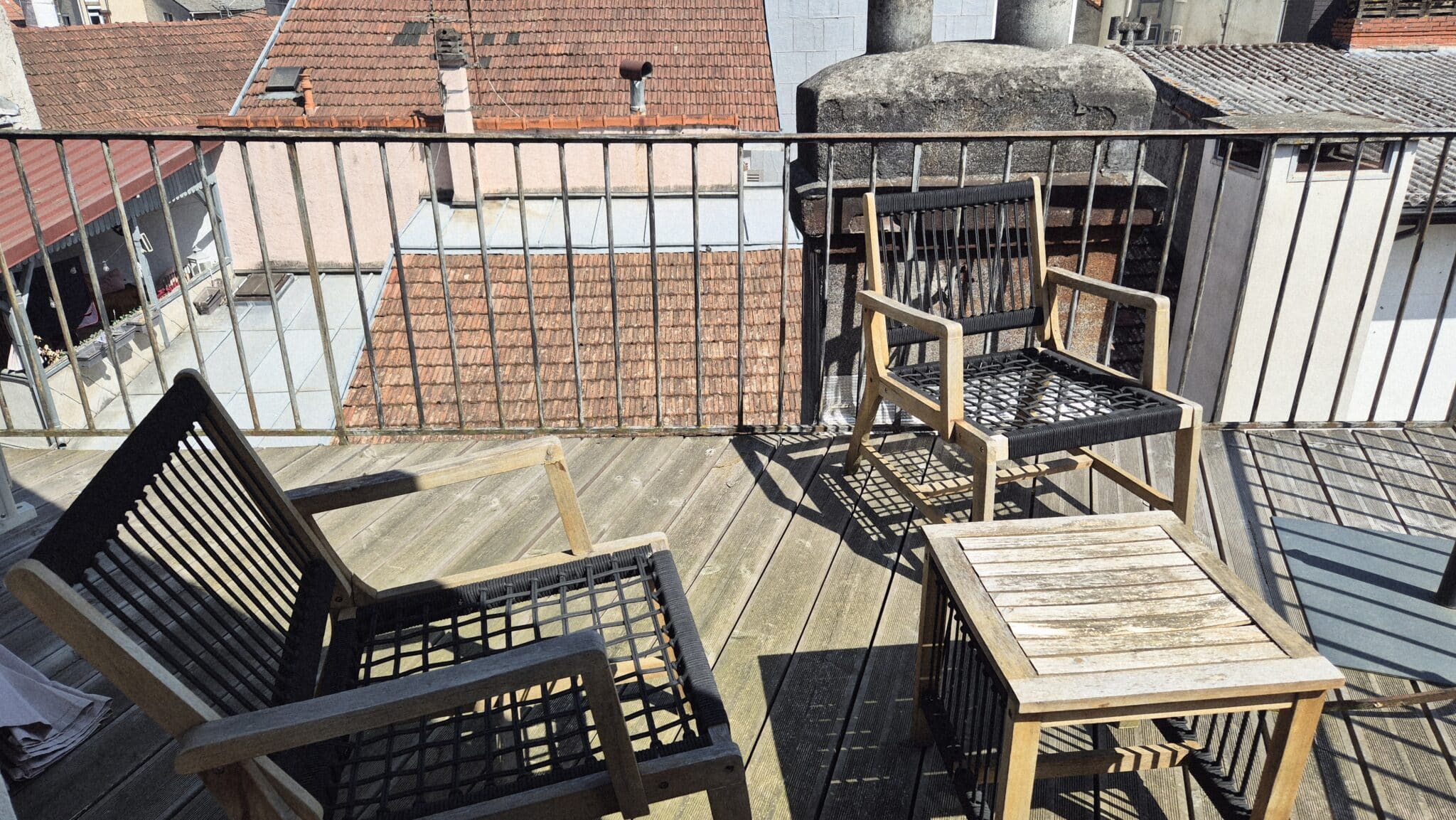 Un extérieur rare en plein centre pour vos cafés au soleil avec vue sur les toits palois.