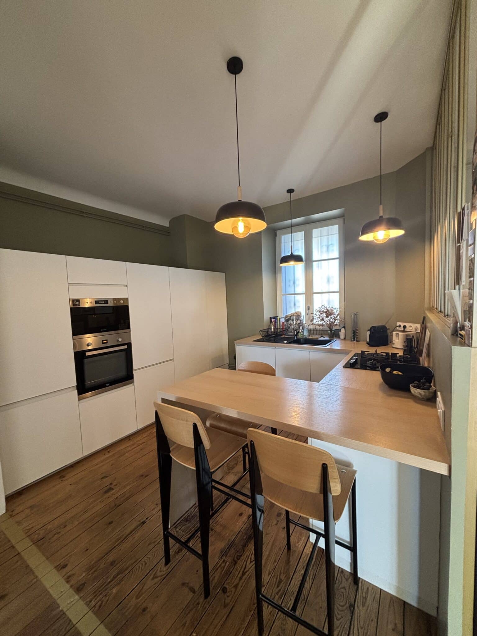Sur 115 m², la lumière circule librement et sublime les beaux volumes. Le séjour de 40 m², vaste et accueillant, invite aux moments partagés, aux soirées feutrées comme aux grandes tablées animées. Les trois chambres, généreuses et paisibles, offrent un confort rare en cœur de ville, dont deux aux dimensions remarquables de 18 m² et 16 m².