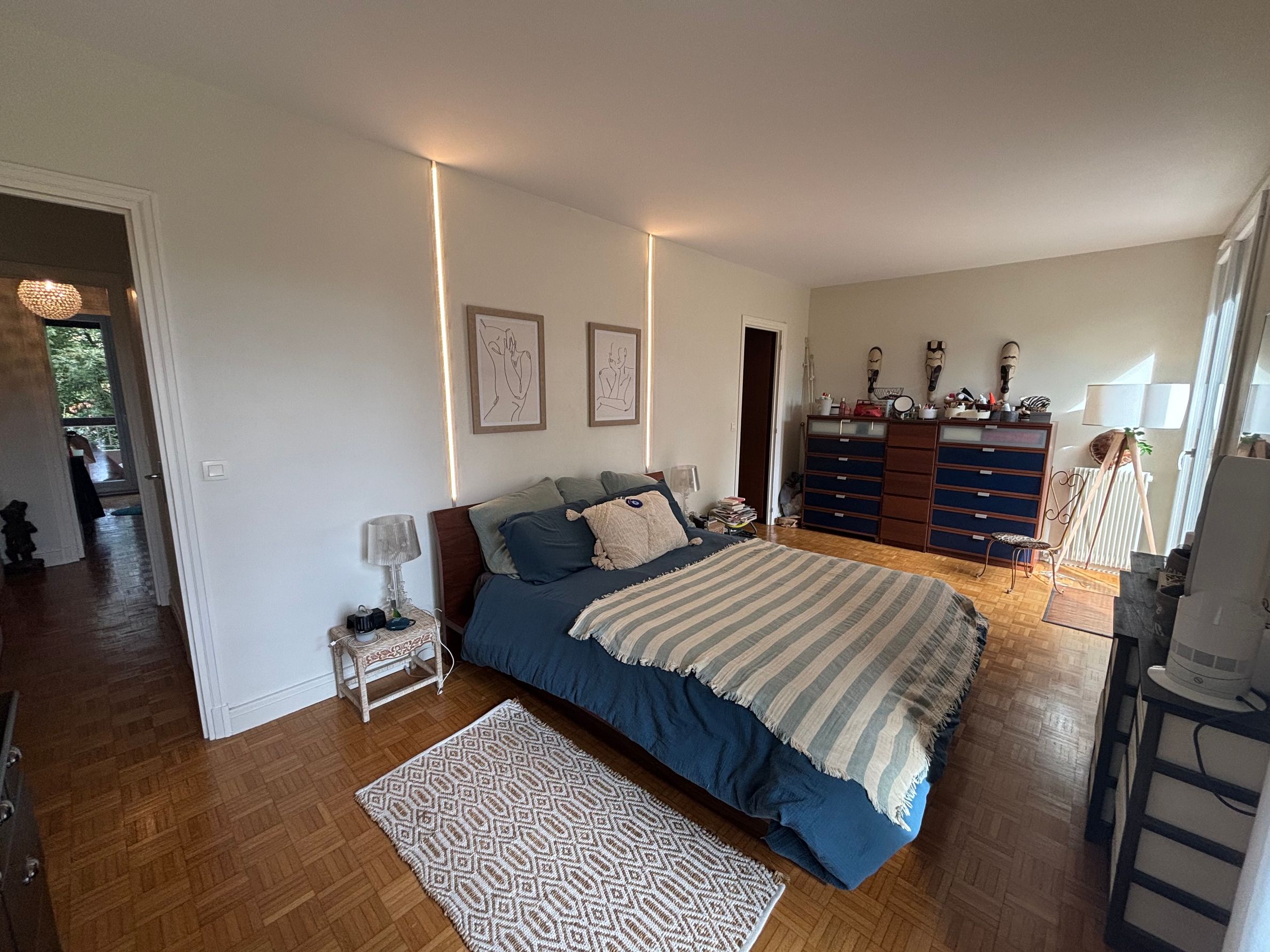 À l’étage, la chambre parentale de 20 m² offre une vue apaisante sur les grands arbres environnants. Deux autres chambres accueillantes avec balcon, une salle d’eau, une salle de bains et un WC indépendant assurent un confort optimal pour toute la famille.