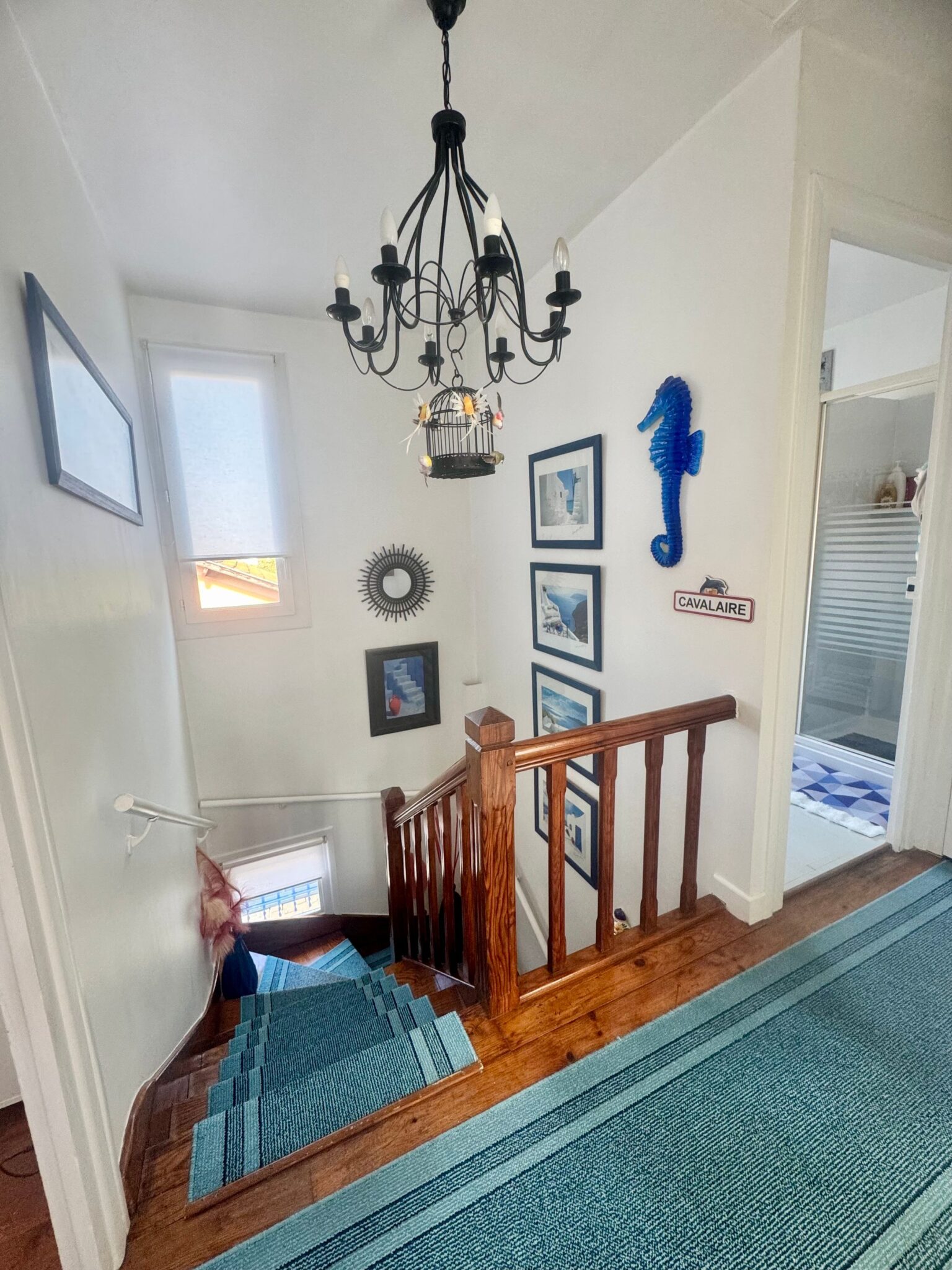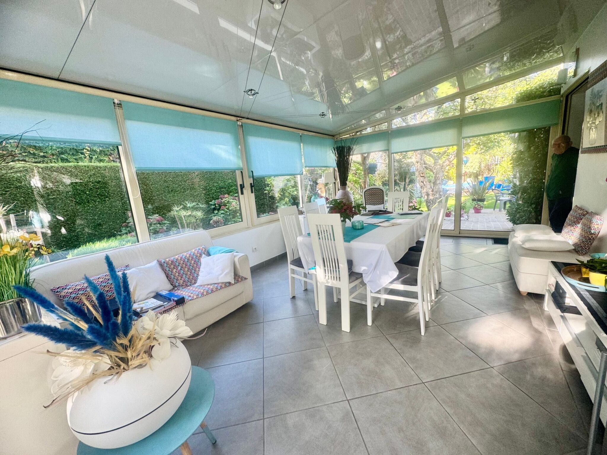 En excellent état d’entretien, elle séduit par ses volumes bien agencés et sa luminosité naturelle. Le rez-de-chaussée accueille un agréable salon-séjour ouvrant sur une vaste véranda de plus de 24 m² exposée plein sud, véritable pièce de vie supplémentaire baignée de lumière, ainsi qu’une cuisine fermée de belle facture et un premier WC. L’étage propose trois chambres confortables, une salle d’eau et un WC séparé, offrant un espace nuit fonctionnel et chaleureux.