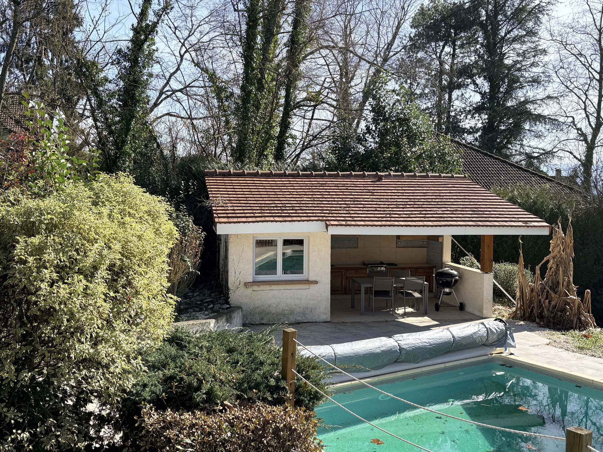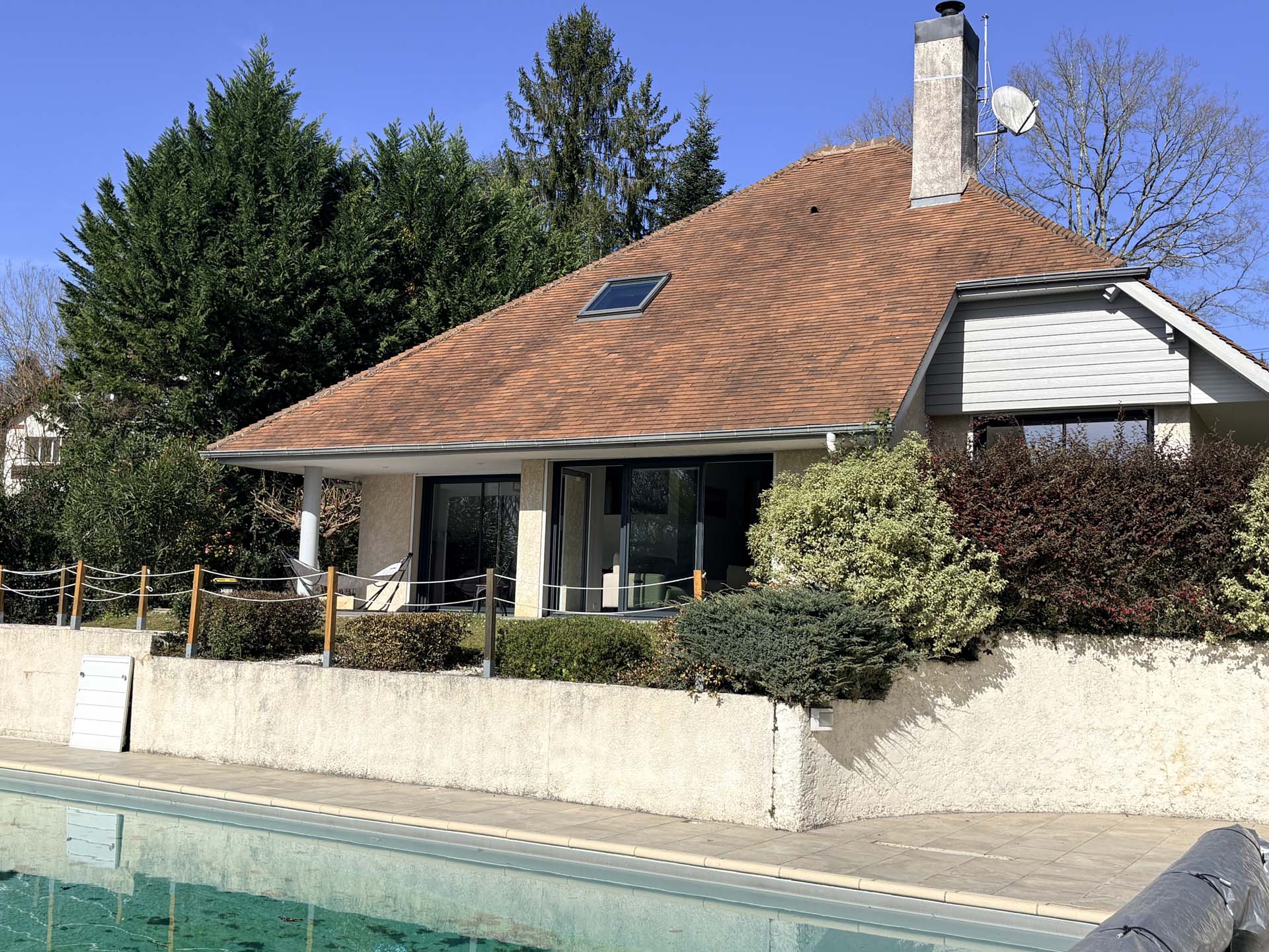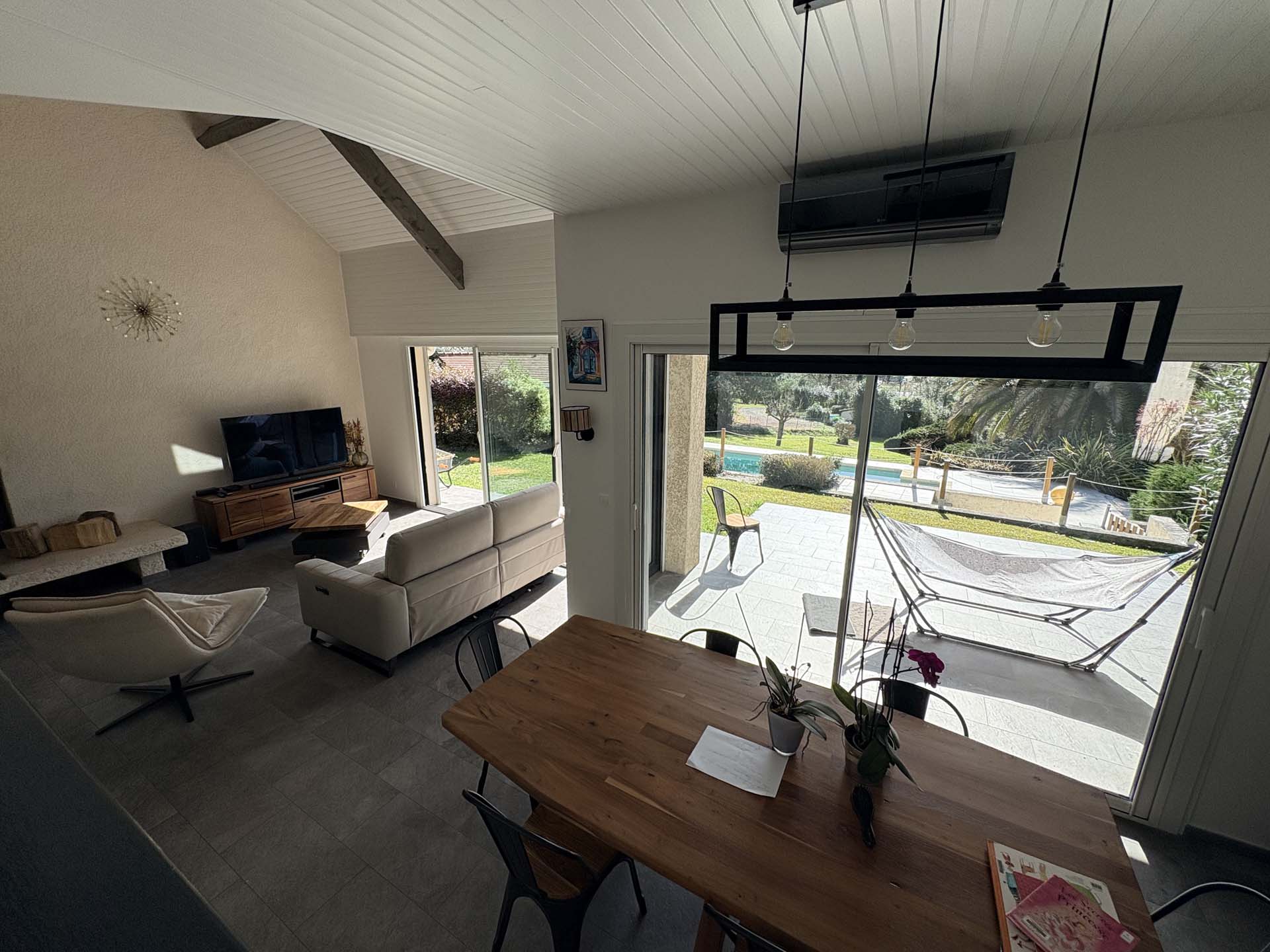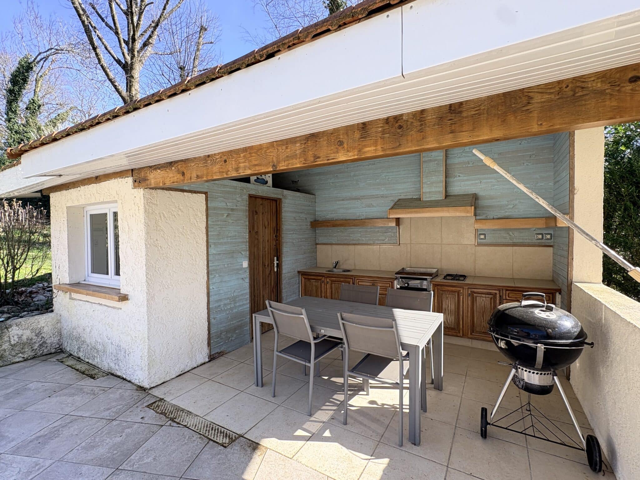 Une impression de vacances dans cette maison qui bénéficie également d’une grande piscine au sel (5×11) et d’une cuisine d’été!!
