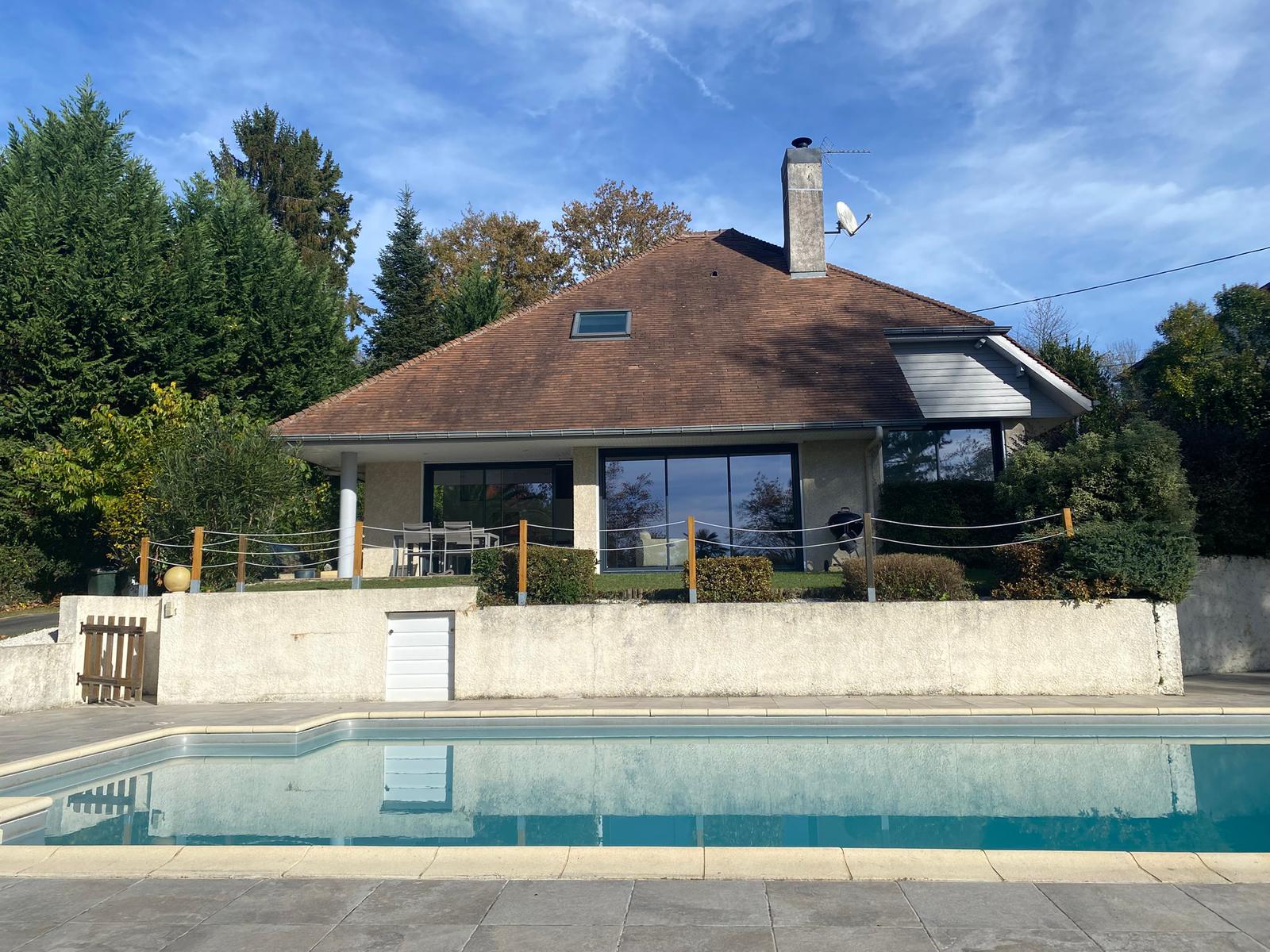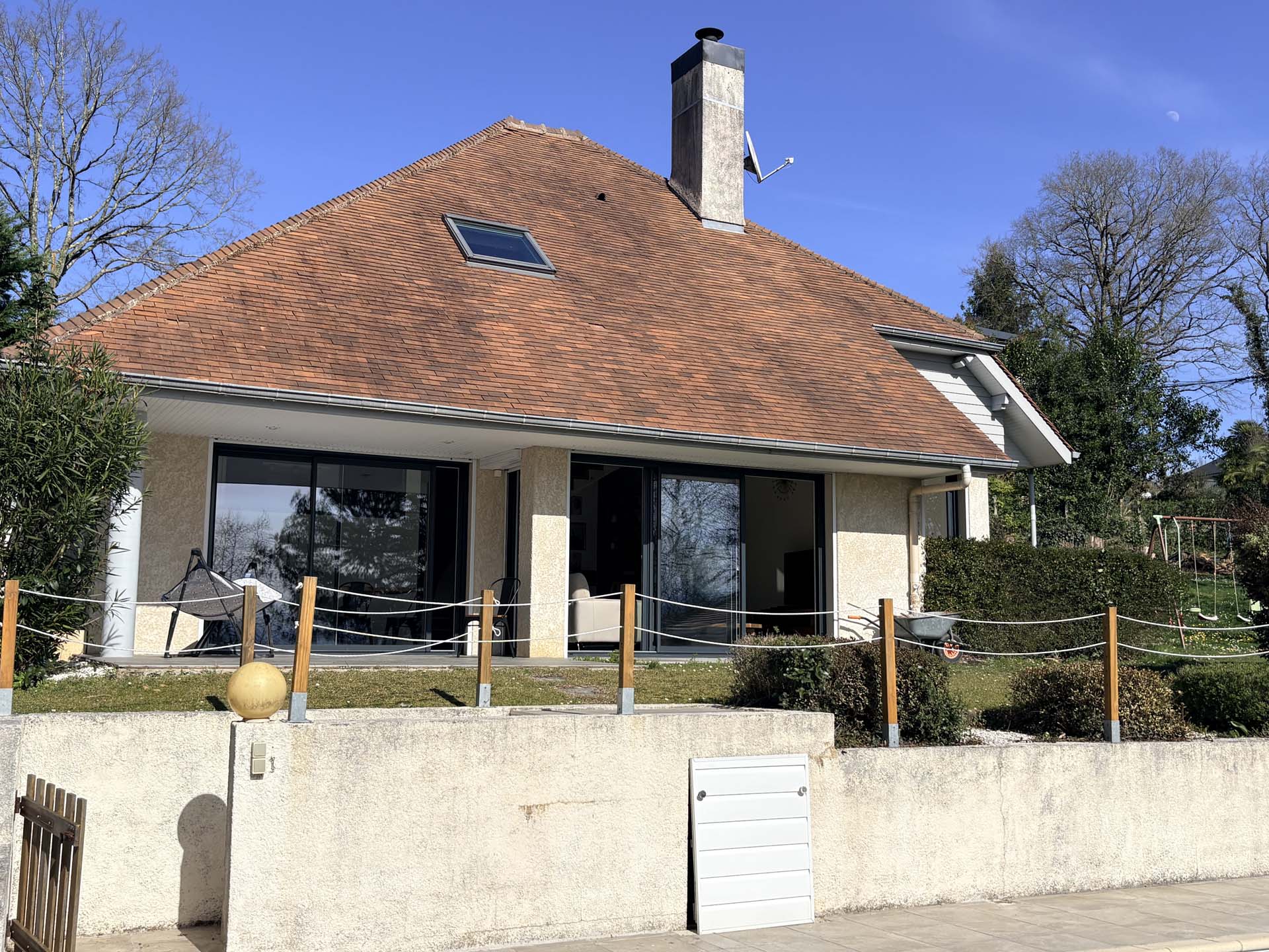 Située dans une commune prisée de l’Est de Pau, proche Total, laissez vous séduire par cette belle maison familiale de 150m2, sur 2732m2 d’un magnifique terrain arboré, exposé sud avec une belle vue Pyrénées.