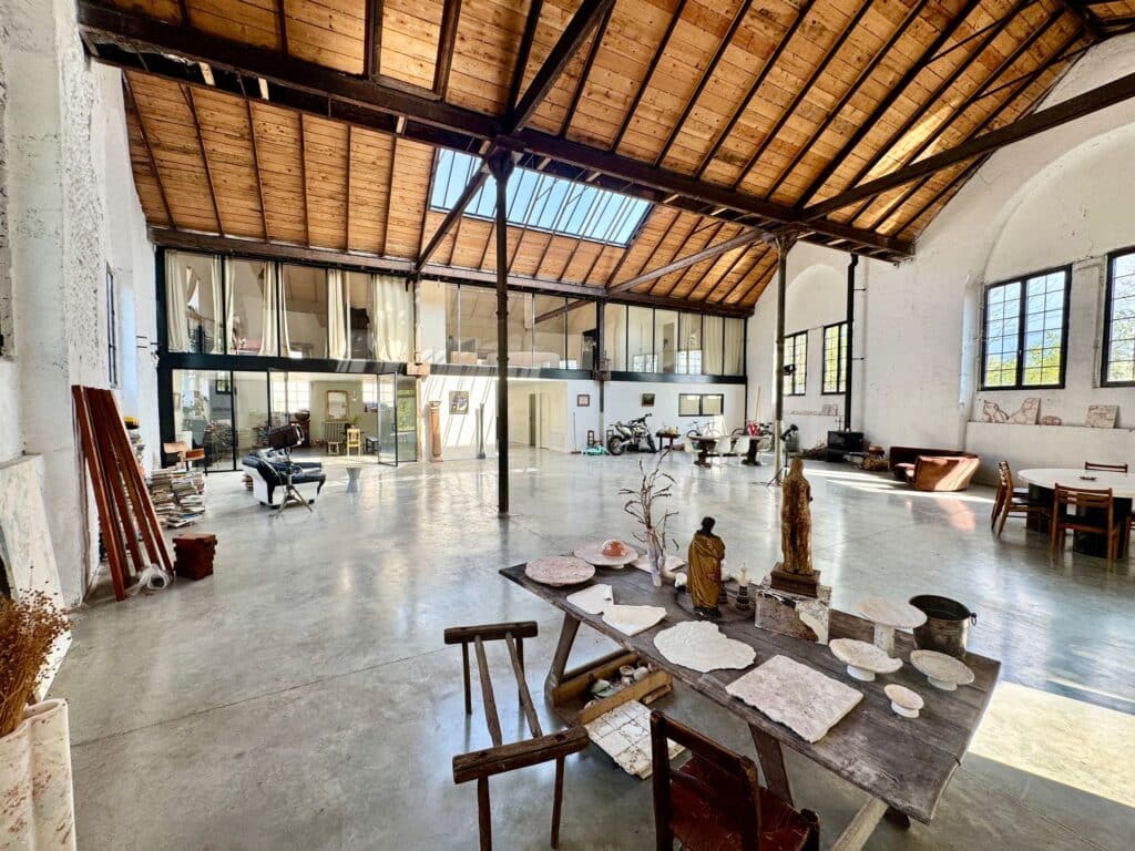 L’ensemble s’articule autour d’un espace de vie spectaculaire de 200m², idéal pour accueillir une salle de réception, une galerie pour collectionneur d’œuvres d’art ou un showroom pour véhicules d’exception …